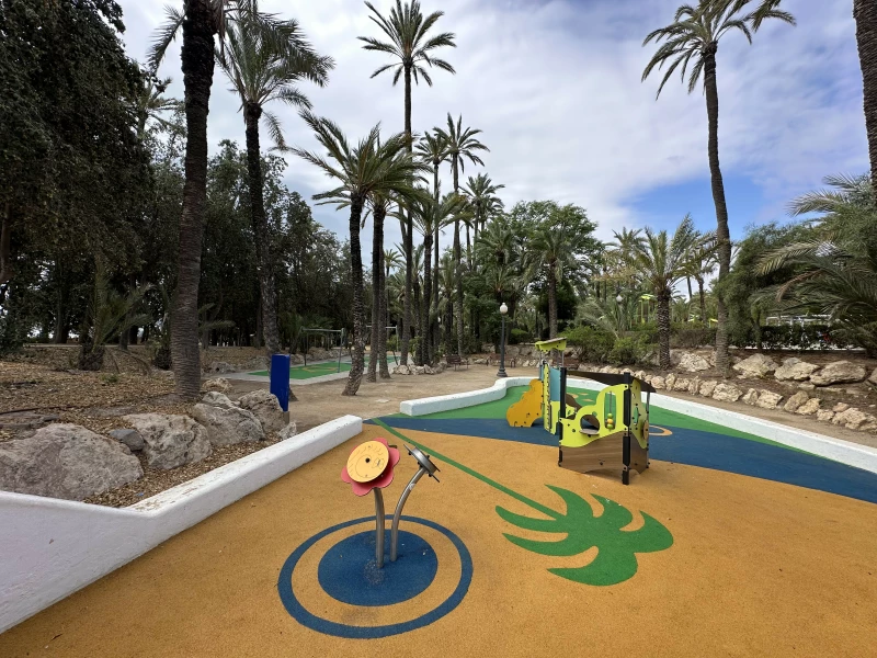 Park El Palmeral ligt net buiten het centrum van Alicante en is een verrassend grote en rustige plek voor een ontspannen dag in het groen. Je wandelt er tussen palmbomen, bruggetjes, watervallen en vijvers vol vissen en schildpadden. Het park is netjes onderhouden en heeft een fijne sfeer, zowel doordeweeks als in het weekend. Je vindt er verschillende zones: wandelpaden, sportvelden, speeltuinen en zelfs een kleine bar met terras.